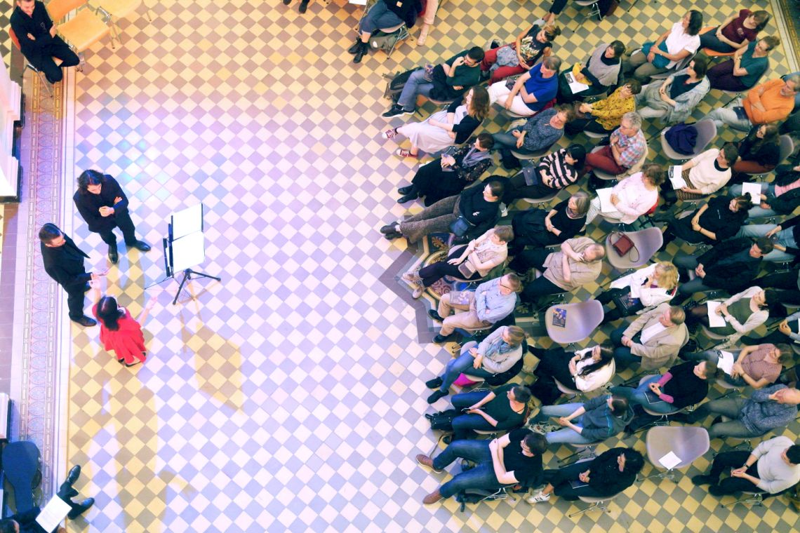 Cerise sur le gâteau : les chanteurs de l'ensemble improvisent un motet à 5 voix sur une mélodie composée au dernier moment – pendant le concert – par un membre (compétent) du public. Frissons garantis !