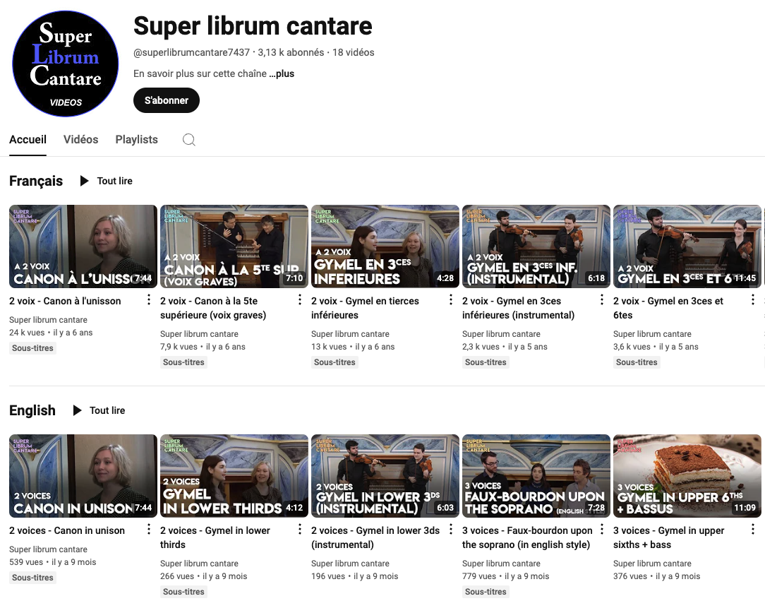 Depuis 2017, l'ensemble Coclico réalise des tutoriels pour la chaîne Youtube Super librum cantare.